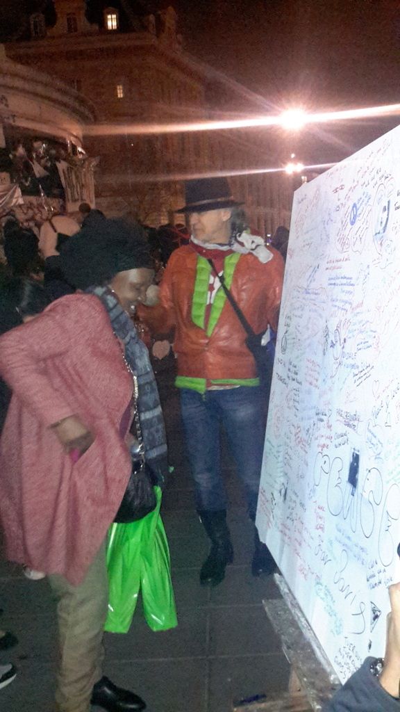 Cependant, la place de la République a aussi été occupée par des groupes qui refusaient de se plier à l’interdiction de la manifestation et des personnes qui allaient ou revenaient de la "chaîne" ou qui venaient comme chaque jour rendre hommage aux victimes des incidents..